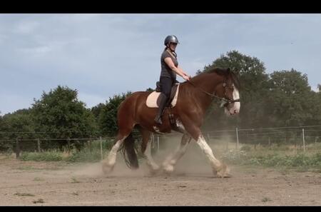 Wij zitten in omgeving Maaseik, Duke is een Clydesdale en hij is 9 jaar. Ik heb hem zelf beleerd en hij was overal snel mee weg, lessen in zijn eentje op vreemde locatie waren ook geen probleem maar fysiek van het erf wegstappen is een no-go. Ik heb geen rijbak ter beschikking.