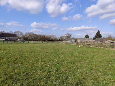 Stukje weiland, schuilstal en stalling aanwezig. Tevens ruimte voor opbergen spullen, toilet en wasbak.