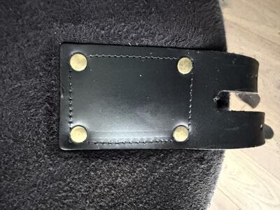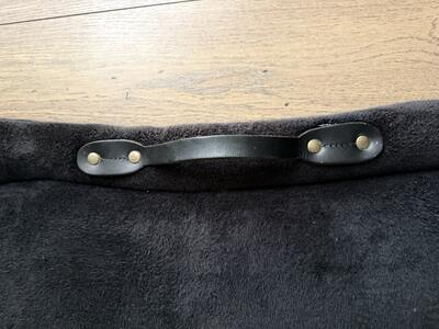 De pad is voorzien van een lederen handgreep en singelstoten. Alles is nog perfect in orde (nagels, stiksels, leder). Aan 1 kant minimale krasjes op de singelstoot.